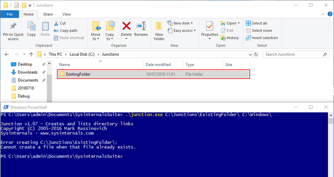 Another tool that could be used for this type of attack is called mklink.exe from Windows, but this requires elevated privileges, which would not have been possible in this situation (the point is that we’re attempting to gain elevated privileges).