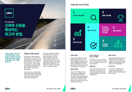본 브로셔에서는 LRQA 의 검증 서비스의 특장점을 비롯한 검증프로세스 및 검증 의견서에 대하여 설명합니다.