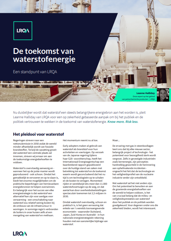Download het artikel direct om meer te weten te komen over Leanne's visie op waterstof, de verschillende terminologie die in de sector wordt gebruikt en hoe waterstofdistributie veilig en op schaal kan worden ontwikkeld.